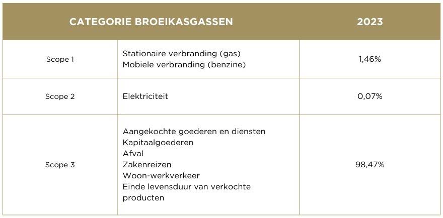 Onze directe en indirecte emissies van scope 1 en 2 vertegenwoordigen slechts 1,5% van de totale emissies, met het gebruik van aardgas als grootste aandeel. Scope 3 emissies, voornamelijk door ingekochte goederen (hoofdzakelijk billets), vormen meer dan 98% van onze voetafdruk.